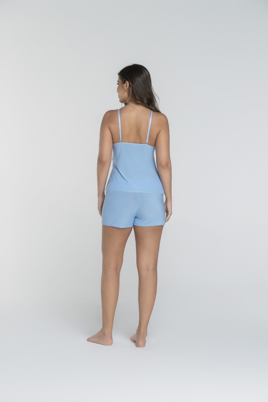 O Baby Doll Emy é a definição de delicadeza com um toque de elegância. Em um tom azul claro suave, ele transmite frescor e leveza, perfeito para quem gosta de se sentir confortável sem abrir mão do charme.