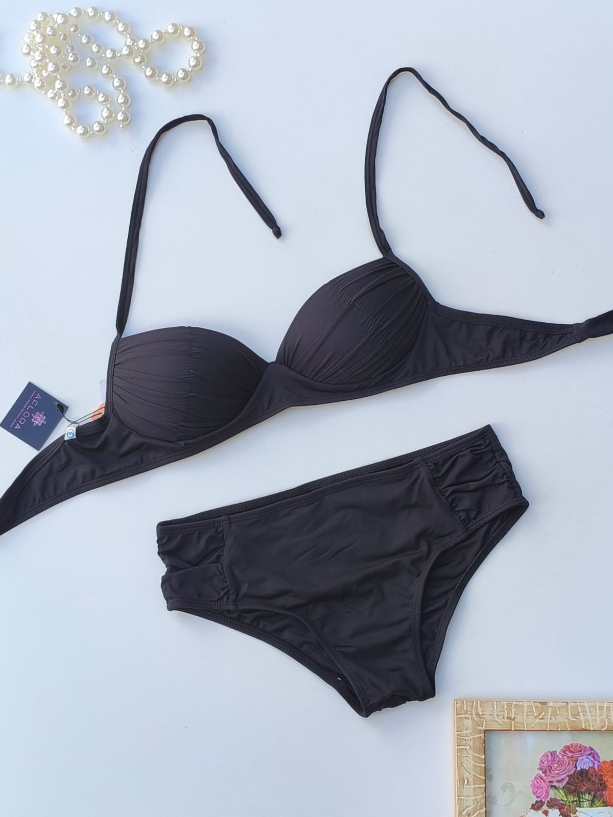 Sutiã drapeado com bojo fixo, que valoriza o busto com elegância e conforto. Calcinha comportada com delicados detalhes drapeados nas laterais, garantindo charme e sofisticação à sua praia ou piscina. Um clássico que une estilo e conforto!