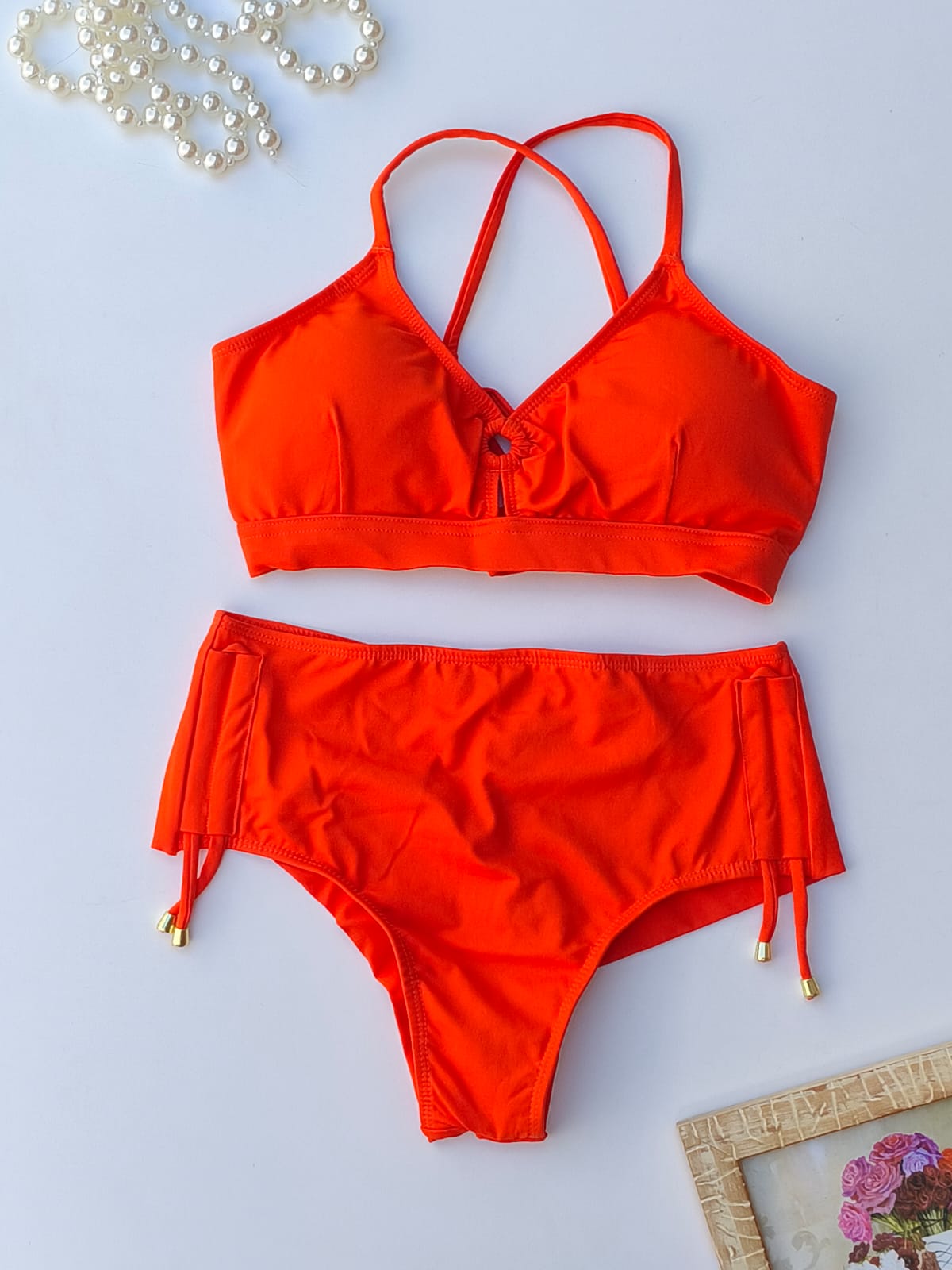 Em um tom vibrante que acende o bronze, esse biquíni é puro destaque – ideal para arrasar na praia ou piscina com um visual marcante e moderno.