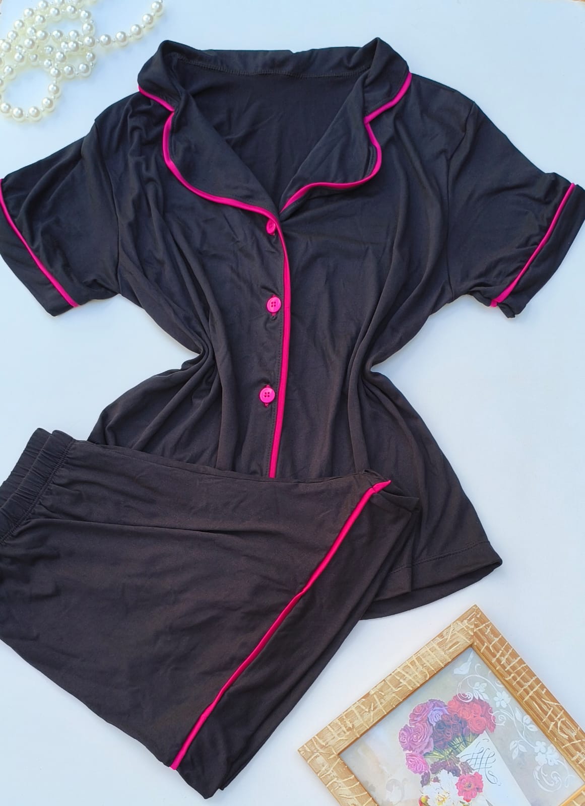 Os Pijamas Americanos Lisos AFlora foram criados para quem ama aquele visual sofisticado até na hora de relaxar. Confeccionados em suede premium de toque macio e leve, eles unem o clássico corte americano — com botões frontais e gola delicada — a cores lisas e acabamentos contrastantes que dão um toque moderno e irresistível.